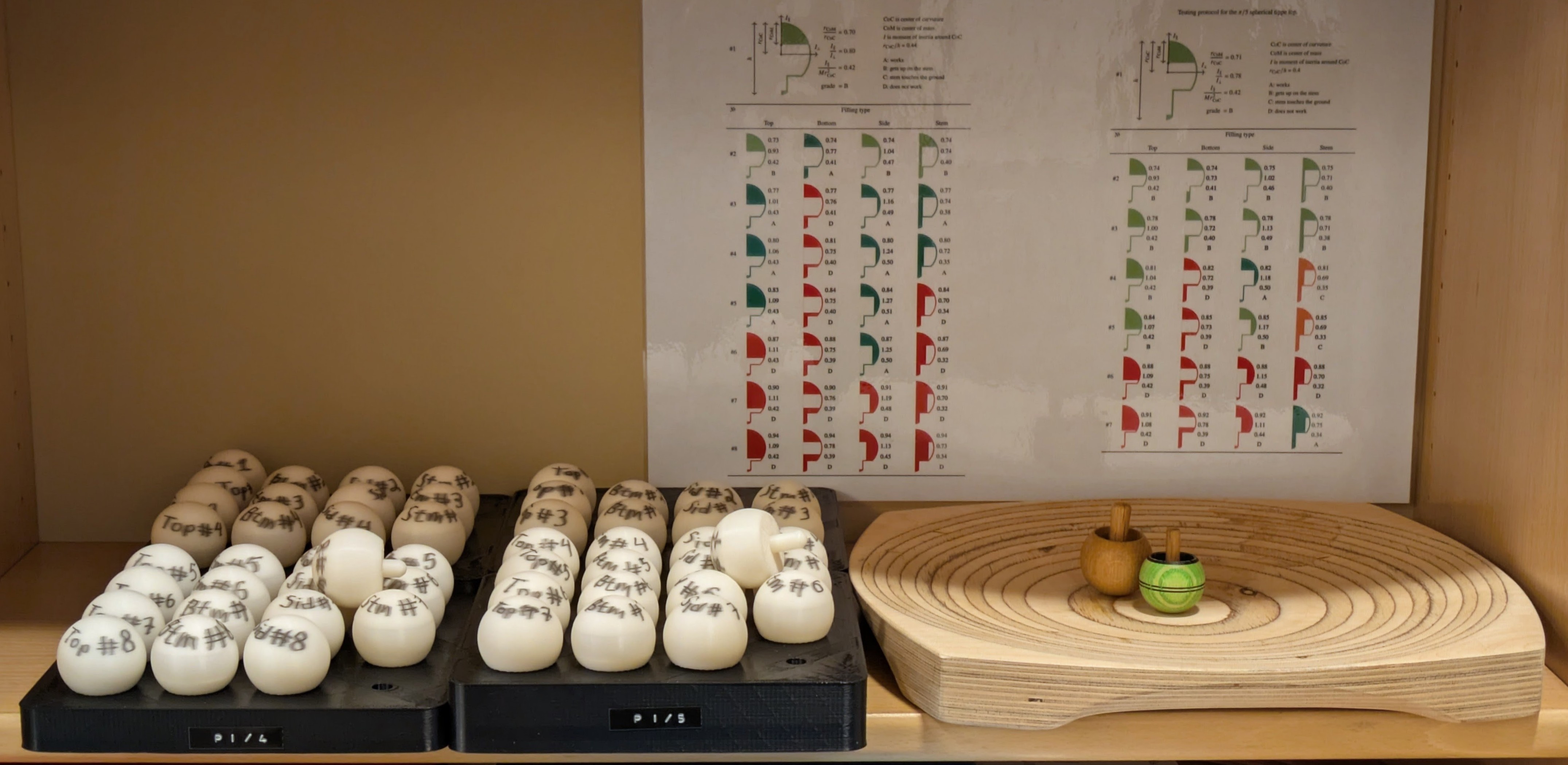 All the printed tippe tops were spun by my friend, Enrique, and graded A to D by their performance.